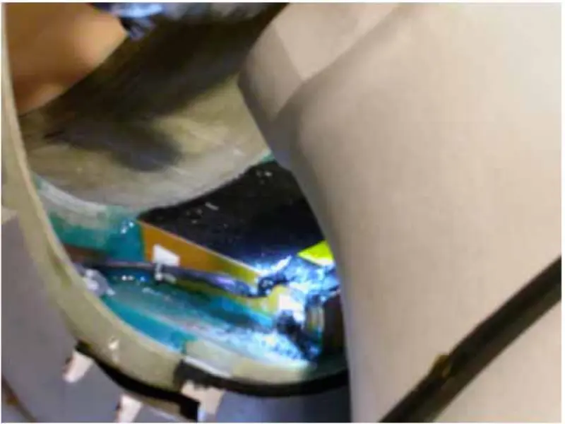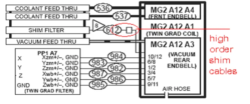 वरील कृती आणि विश्लेषणावरून, आम्ही असा निष्कर्ष काढतो की समस्या ग्रेडियंट कॉइलमुळे उद्भवली पाहिजे. म्हणून आम्ही चुंबकाचे पुढील आणि मागील आवरण काढून टाकतो, ग्रेडियंट कॉइलशी संबंधित बोल्ट तपासतो आणि घट्ट करतो. चुंबकाचे मागील कव्हर काढून टाकल्यानंतर, आम्हाला आढळते की हाय ऑर्डर शिम केबल जळून काळी झाली आहे.
